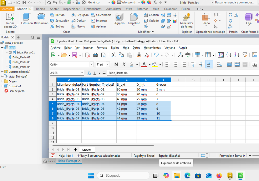 Posibles Problemas de Rendimiento. Algunos usuarios han informado que LibreOffice Calc puede ser menos eficiente en el manejo de hojas de cálculo extremadamente grandes o con muchas referencias cruzadas, lo cual podría ralentizar el rendimiento de Inventor al trabajar con datos complejos en iParts o estados de modelo vinculados.